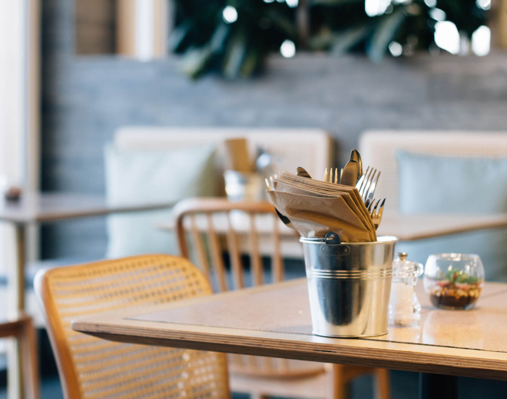 Burgare av 100gr nötkött, serveras med sallad, dressing och lök